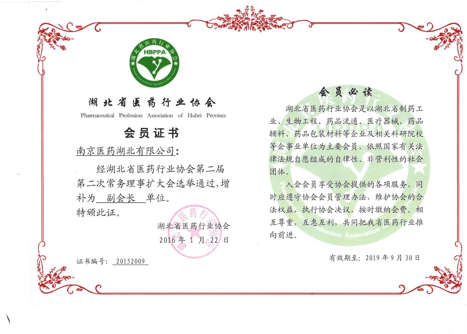 湖北省医药行业协会—第三届副会长单位